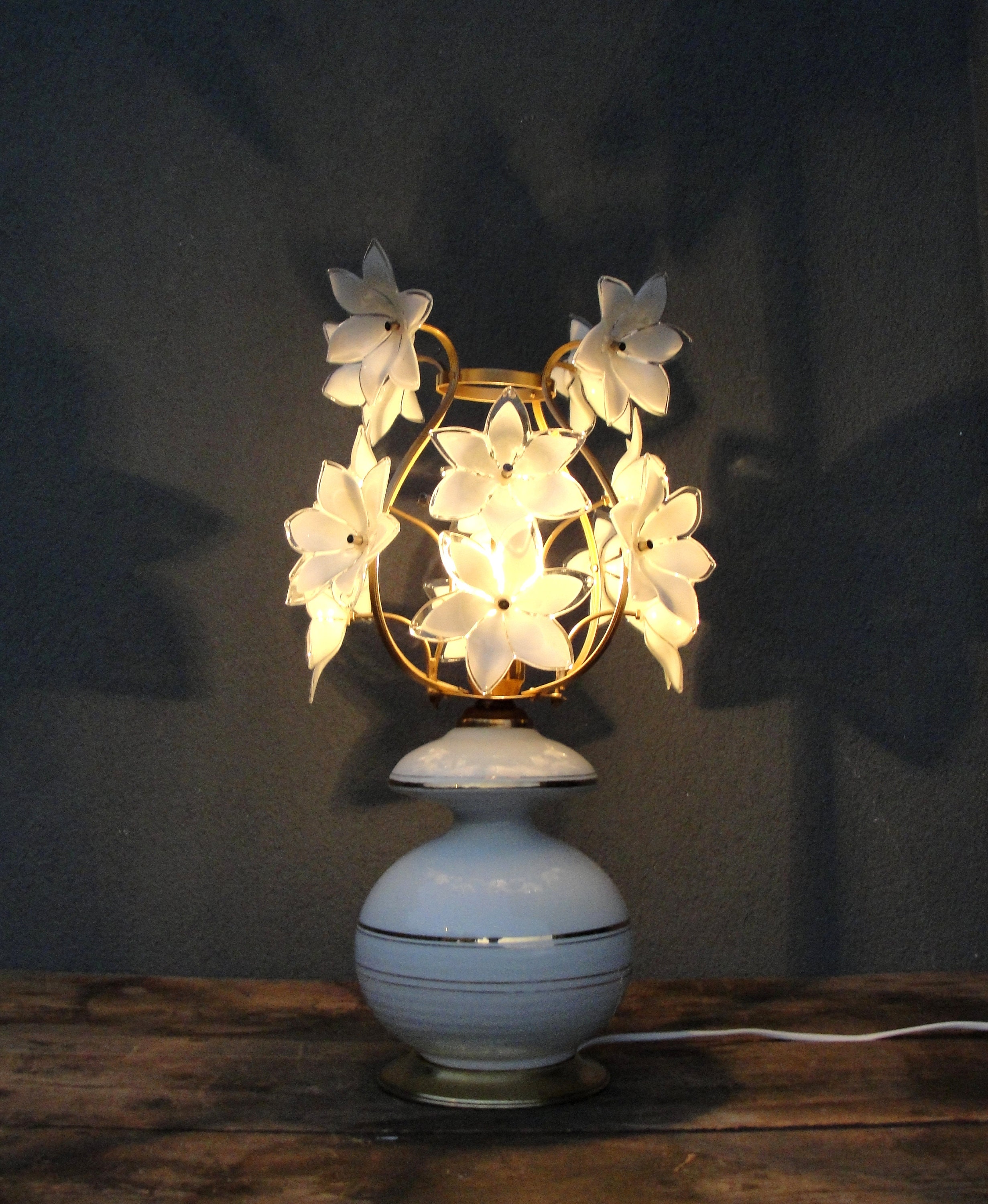 Murano Flower Table Lamp Handmade Glass And Porcelain Etsy Uk