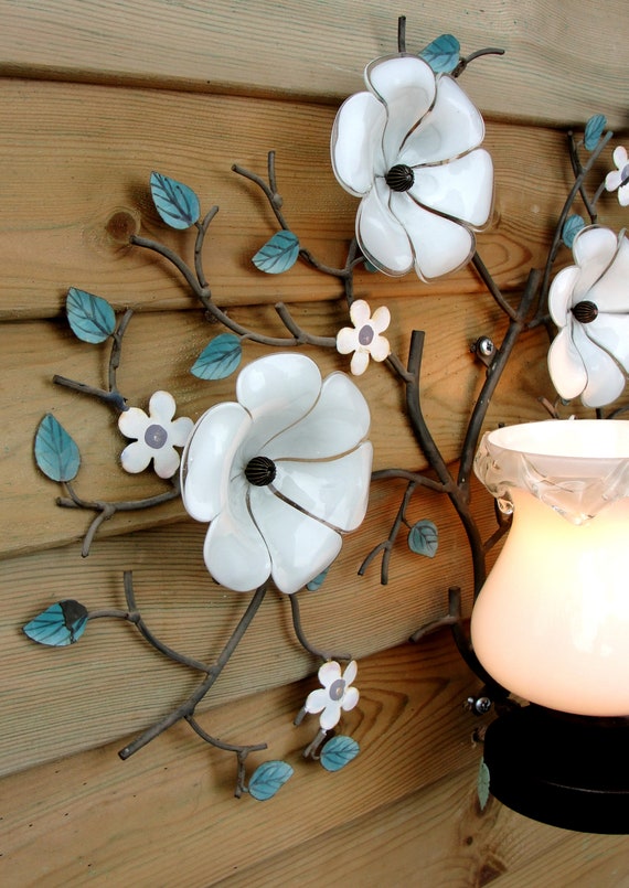 Floral Tole Sconce Murano Glass Flowers Lamp Vintage Brass Etsy Uk